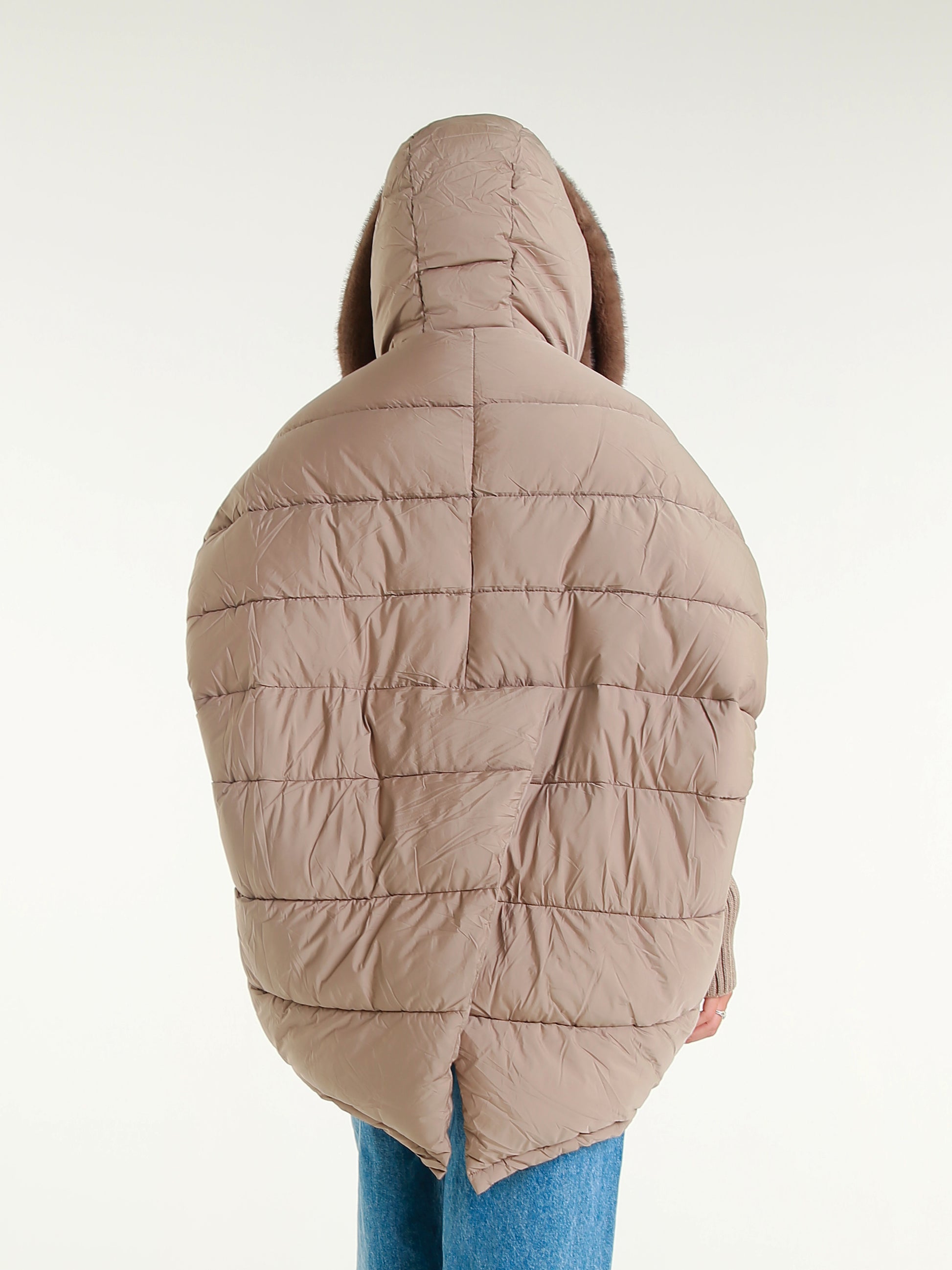 Piumino donna con cappuccio in pelliccia sintetica | Cappotto imbottito medio-lungo