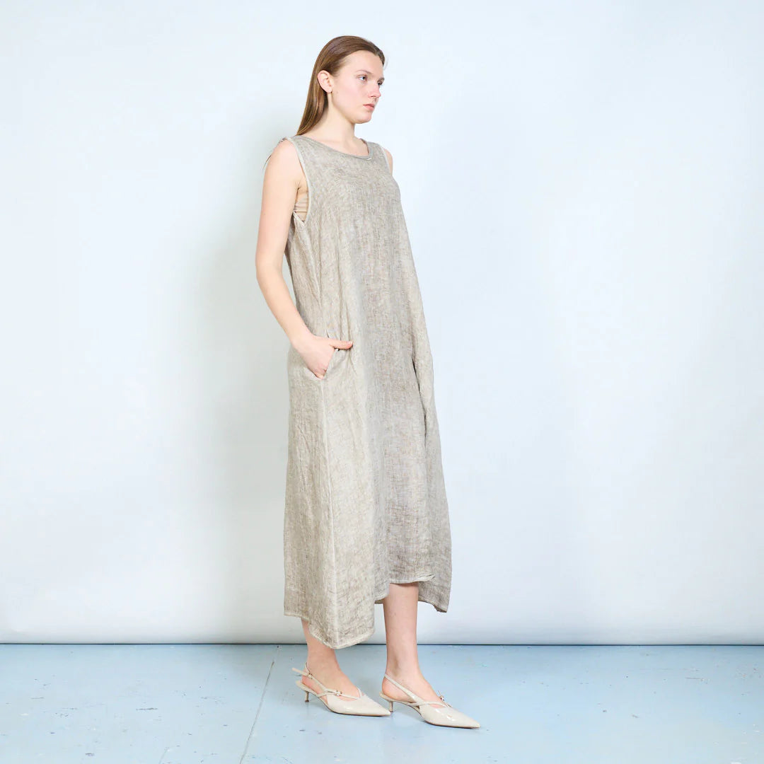 Abito lungo dal design essenziale e pulito, pensato per uno stile naturale e senza tempo.