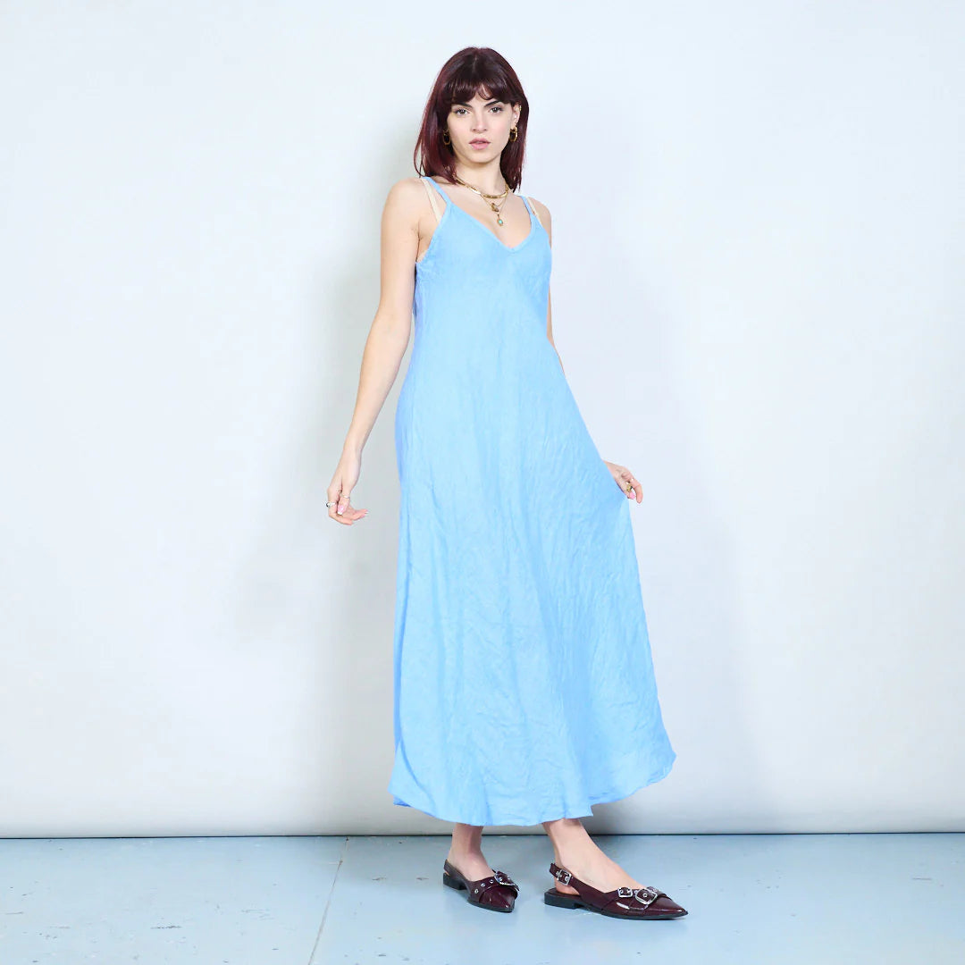 Abito lungo con spalline sottili e scollo a V